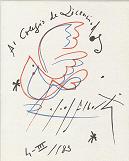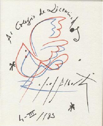 "...Pero yo sólo sé hacer palomas...", y Alberti cogió los lápices de colores y echó a volar muchas palomas... Por el cielo cóncavo, entre estrellas y soles, cruza la que dedicó al Colegio de Licenciados el día cuatro de marzo de 1983.